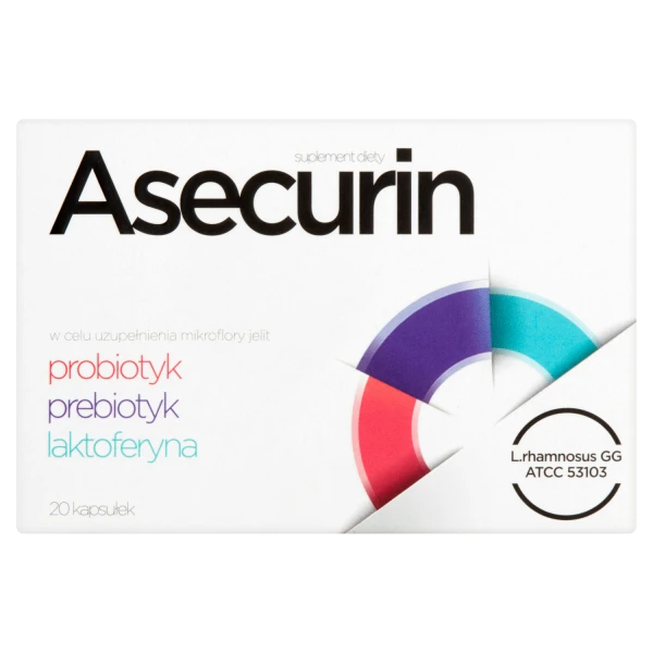 Suplement diety Asecurin IB to kompleksowe połączenie probiotyków z prebiotykiem. Każda kapsułka zawiera specjalnie wybrane szczepy bakterii z rodzaju Lactobacillus i Bifidobacerium oraz drożdże Saccharomyces boulardii. Formuła została uzupełniona dodatkowo o inulinę. Specjalnie wybrane szczepy bakterii probiotycznych oraz drożdże, w naturalny sposób uzupełniają mikroflorę jelitową. Dzięki zastosowaniu kapsułek celulozowych, które są odporne na soki żołądkowe probiotyk dociera bezpośrednio do miejsca przeznaczania, czyli do jelit, a jej zawartość nie ulega strawieniu w żołądku. Produkt może być stosowany u osób dorosłych i dzieci od 3. roku życia.
