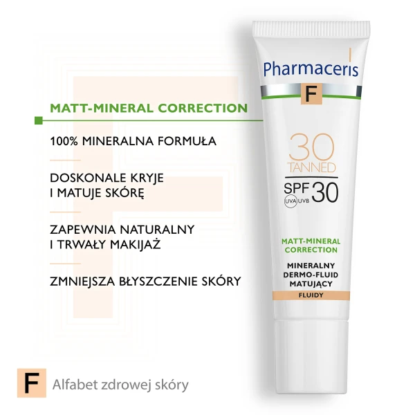 Pharmaceris F Matt-Mineral-Correction, mineralny dermo-fluid matujący, 30 Tanned, SPF 30, 30 ml