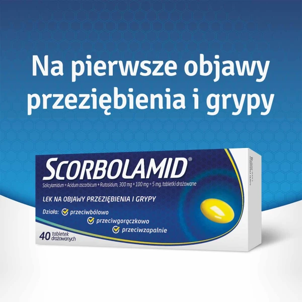 Scorbolamid® to wieloskładnikowy lek w postaci tabletek drażowanych, wykazujący złożone działanie przeciwbólowe, przeciwzapalne i wspierające odporność. Preparat polecany jest szczególnie w łagodzeniu objawów przeziębienia i grypy, takich jak gorączka, ból głowy czy nerwobóle.