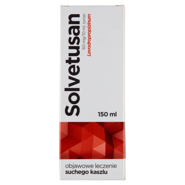Solvetusan to syrop przeciwkaszlowy, który pomaga w łagodzeniu suchego kaszlu różnego pochodzenia, m.in. przy infekcjach dróg oddechowych czy krztuścu. Jego substancją czynną jest lewodropropizyna, która nie tylko tłumi odruch kaszlu, ale także działa rozkurczająco na oskrzela, wspierając komfort oddychania.